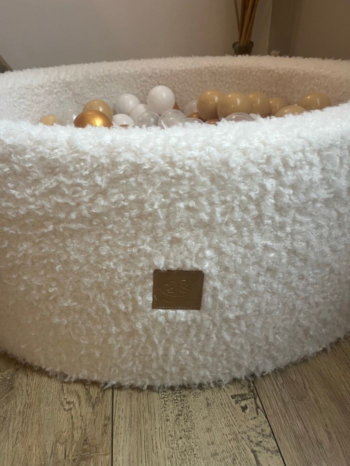 Excellent état Housse style moumoute 90 cm de large 30cm de hauteur 200 balles Déhoussable et lavable en machine Neuves 120 euros
