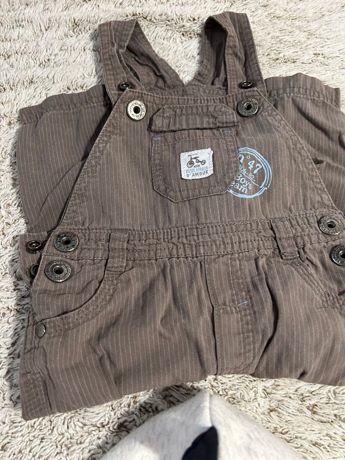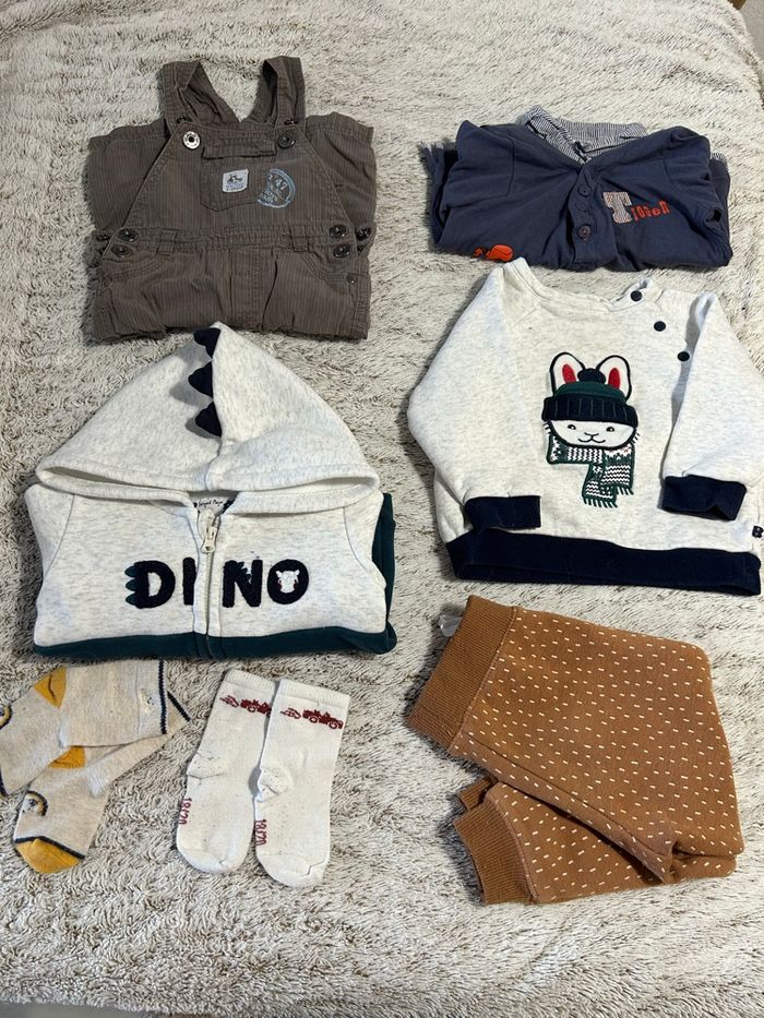 Tout en tres bon état Pull - obaïbi / 12 mois Salopette - Gémo / 12 mois Veste - Sergent Major / 12 mois Pantalon - In extenso / 12 mois Haut manches longues Disney / 18 mois Chaussettes : 18 - 20