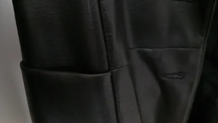 Veste longue noire Xanaka, taille 38 Imitation cuir, PVC et coton 4 boutons, 2 poches avant invisibles Très bon état