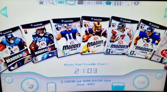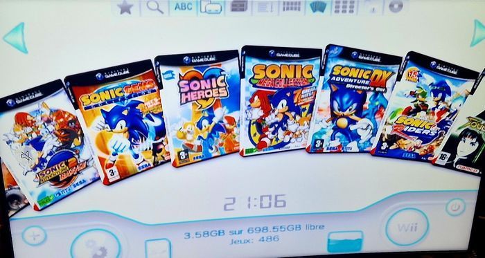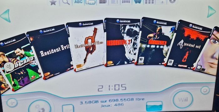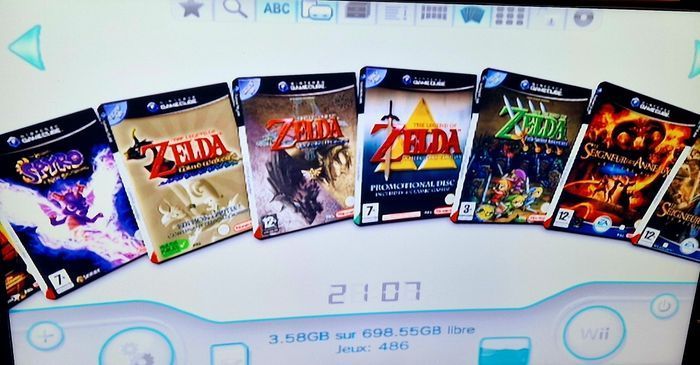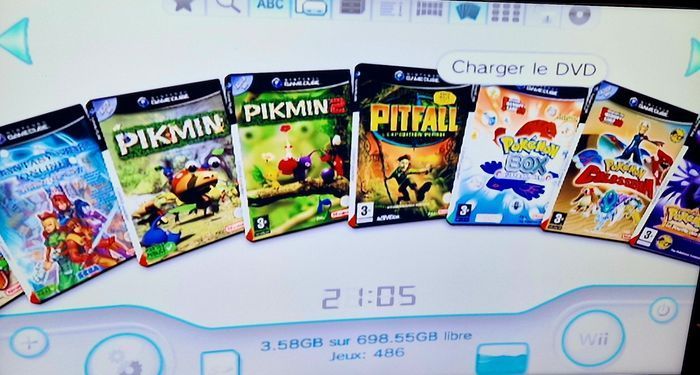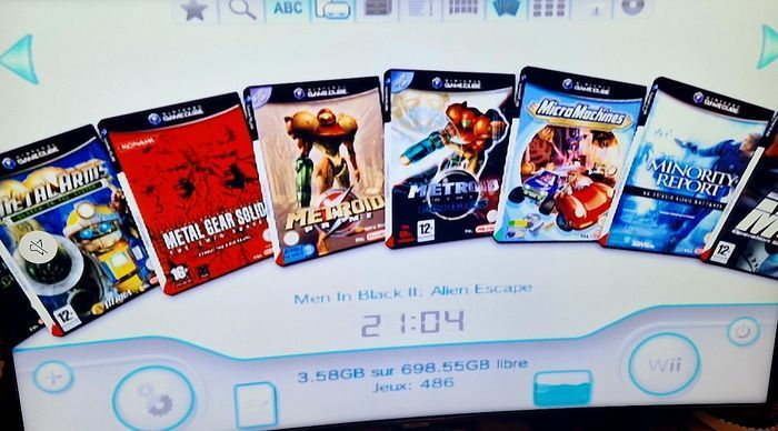 [Full Set Gamecube] 486 jeux au total dans la Nintendo Wii avec tous les jeux gamecube français et certains américains. La majorité des jeux game cube européens (pal) sont en français. La console est vendue avec une wiimote, un capteur infrarouge (senso bar), ses alimentations officielles, une manette gamecube non originale, un disque dur. Tout est fonctionnel et en excellent état Envoi rapide et soigné Maison non fumeur