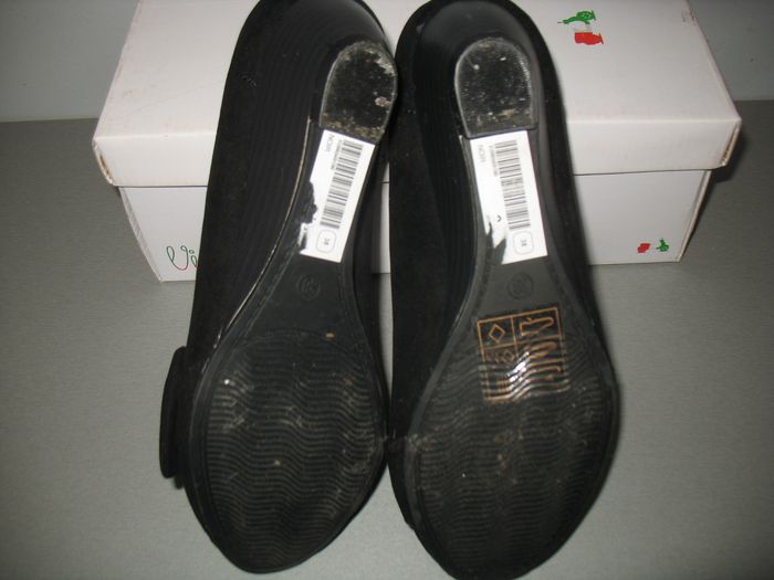 #Chaussures_Femme_Nathg2210 CHAUSSURES NOIRES EN DAIM "VIA DONNA" - P38 - n°02 Chaussures noires en daim - Talons compensés - Nœud plat sur le côté - Semelle cuir. Article d’occasion en très bon état - Porté juste 1 fois pour une fête – Nettoyé pour la vente - Livré dans sa boite d'origine. Possibilité d'envoyer d'autres photos sur simple demande. Maison non-fumeur - Sans animaux. Réduction lot activée. Allez voir mes autres ventes, je vide les placards. Beaucoup de vêtements de marque et beaucoup de jouets. Remise en mains propres ou possibilité d'envoi au tarif en vigueur à votre charge. Retour Refusé. Pour tout renseignement, n'hésitez pas à me contacter, je répondrai volontiers à vos questions. Réponse Assurée. Pour Consulter mes autres annonces tapez Nathg2210.