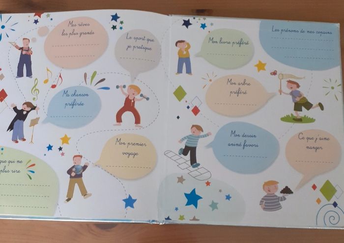 Je vends ce livre pour enfants et adolescents, intitulé "Le monde merveilleux de mes 3 ans". Une grande histoire rien que pour toi et tout pour devenir : incollable en histoire ! Génie en maths ! Écolo en herbe ! Grand maestro ! Champion de la blague ! Super bricoleur ! Marmiton d'exception ! Explorateur intrépide ! - Genre : Livre pour enfant & adolescent - Condition : Très bon état, les pages à compléter sont vierges. N'hésitez pas à me contacter pour plus d'informations !