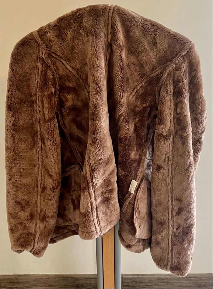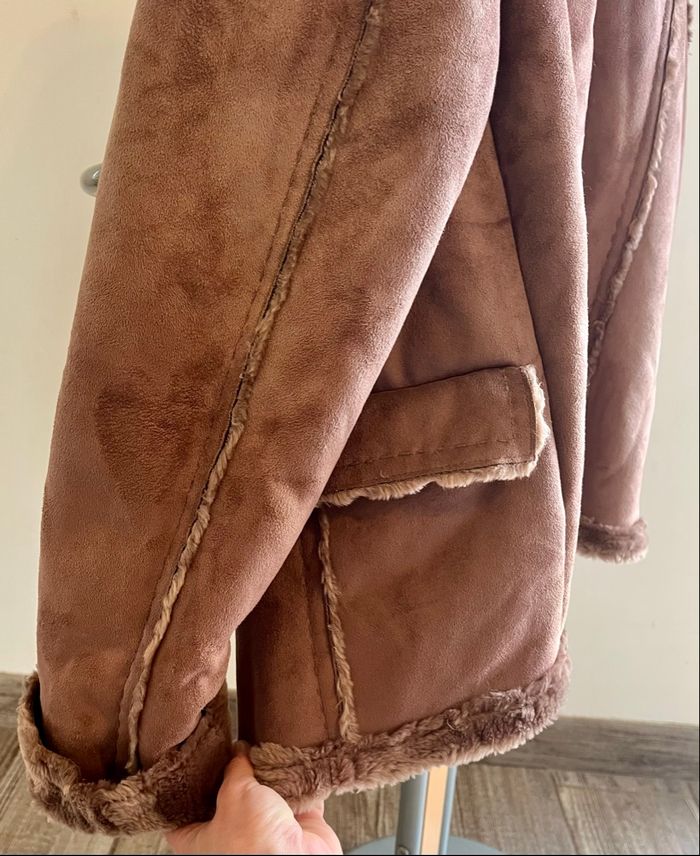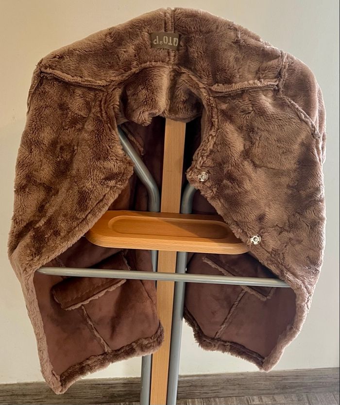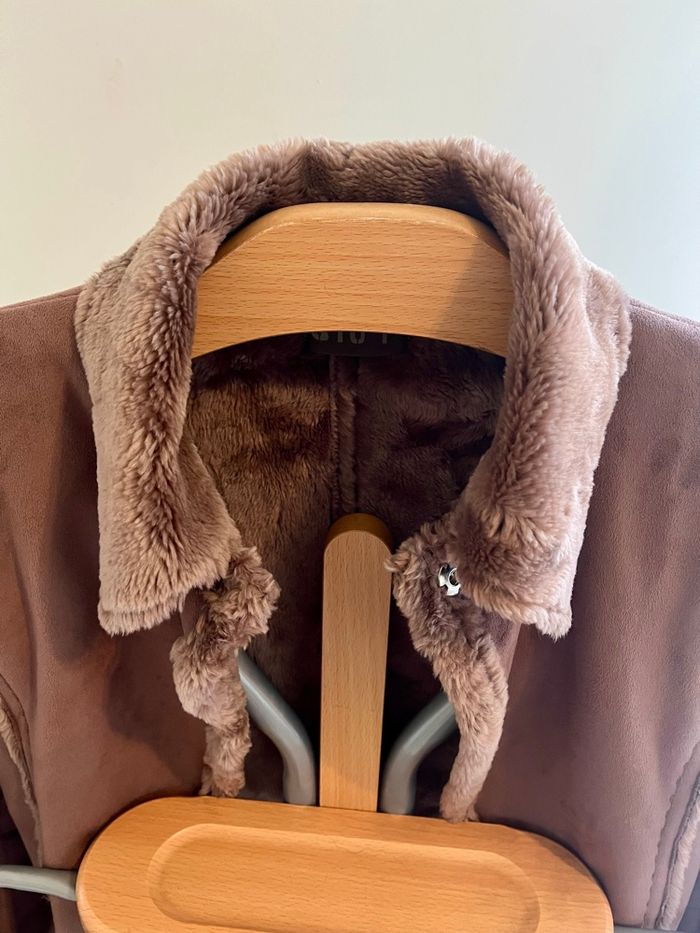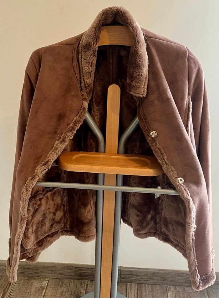 🧥 Manteau mauve court marron effet peau lainée, entièrement doublé en fausse fourrure, avec étiquette QTO*P. Taille indiquée 3 (équiv. M/38). Très chaud et confortable, style vintage. Fermeture par 4 boutons pression. Deux poches. Les manches sont retroussées et maintenues par un fil d’origine : il est possible de couper le fil pour ajuster la longueur si souhaité. Matière principale : polyester (extérieur suédine synthétique et doublure fausse fourrure). 📐 Mesures approximatives à plat : – Épaules : 50 cm – Aisselle à aisselle : 50 cm – Longueur : 61 cm – Manches : 65 cm Très bon état,peu porté, aucun défaut visible. Voir photos 📸 Propre et bien conservé ✅ Remise en mains propres et envois possibles 📤 Possibilités de regrouper plusieurs articles que j’ai en vente 🏷️ D’autres manteaux sont disponibles, jetez un œil aux autres annonces 👀 N’hésitez pas à me contacter si vous désirez plus d’informations 🤗