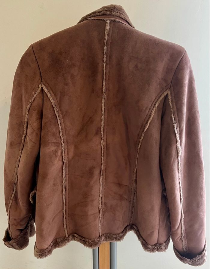 Manteau mauve court marron effet peau lainée doublé fourrure QTO*P - M/T3/38 - Très bon état - photo numéro 10