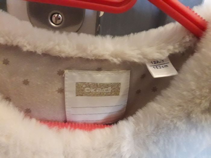 Gilet en moumoute toute douce en très bon état de la marque Okaidi taille 12 ans. Il se ferme avec 2 pressions. Le pression du bas est décousue.