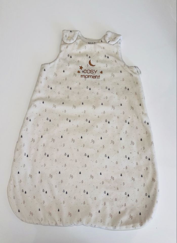 Turbulette en velours, 2 pressions en haut de chaque côté + zip de fermeture. En très bon état. 0-6 mois/ 50cm-67cm/ 3kg-8kg.