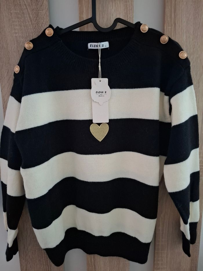 Pull ligné noir/blanc coeur taille unique ok jusqu'au 42 jamais mis