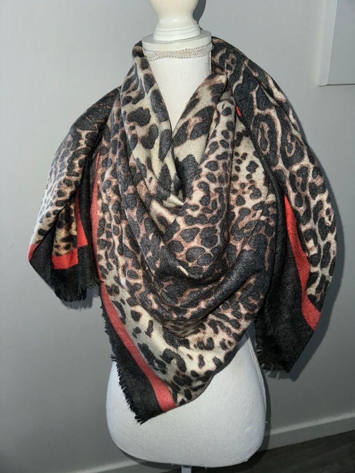 Écharpe châle - Excellent état - Imprimés léopard - Beige gris orange - 130x130cm - Pas d’étiquette de matière - Ultra douce et chaude