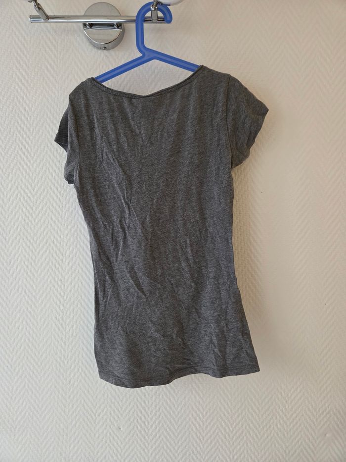 shirt gris moulant manche courte avec écriture H&M Taille xs Très bon état Aucun défaut Prix négociable Remise en main propre possible