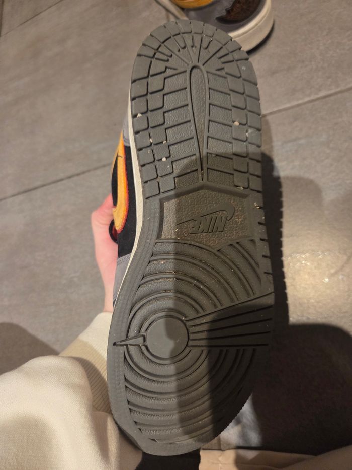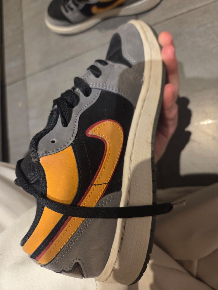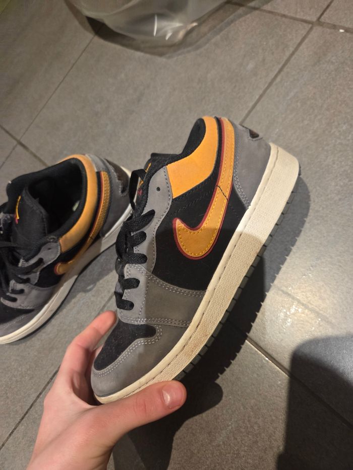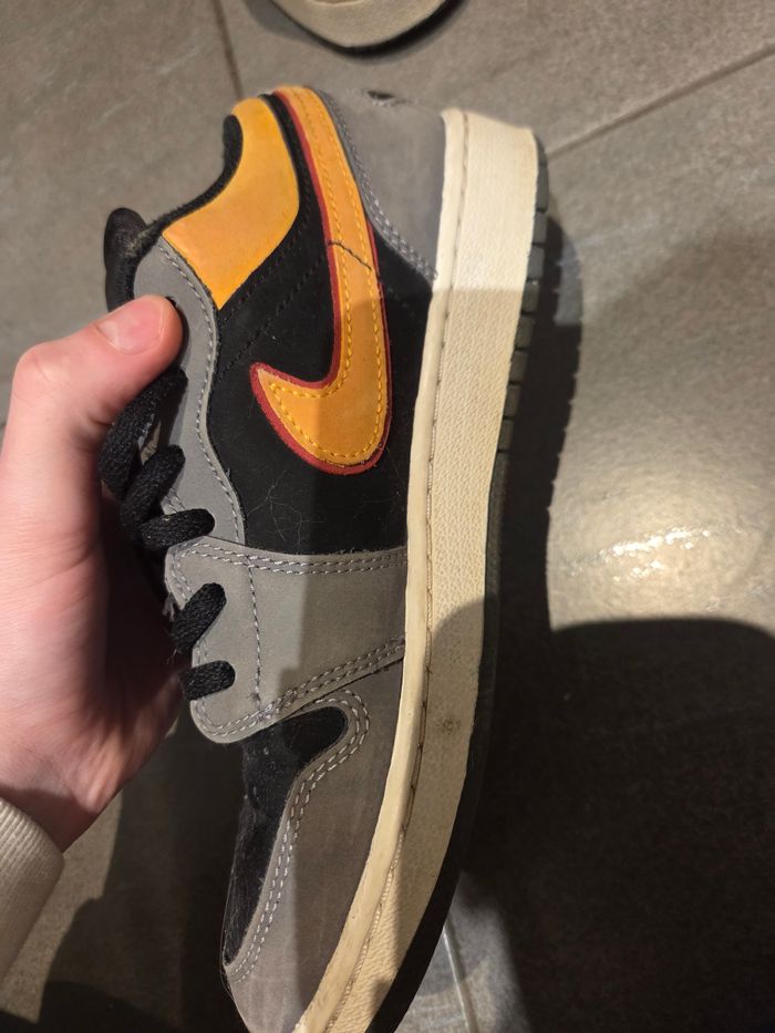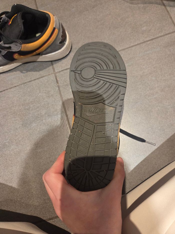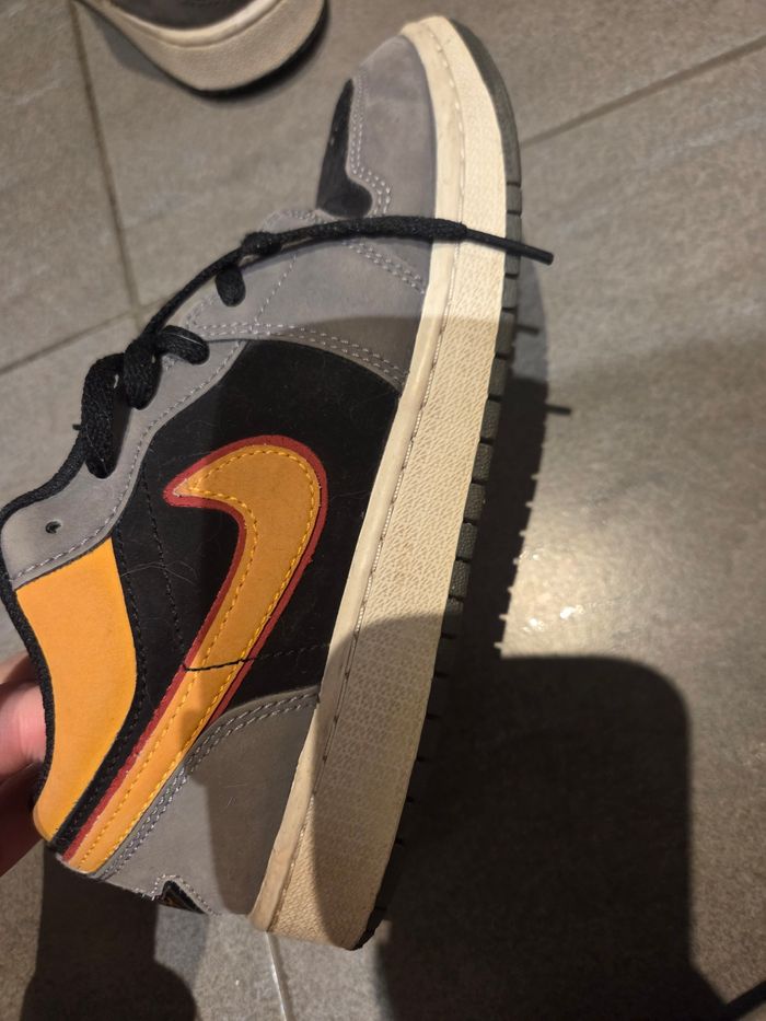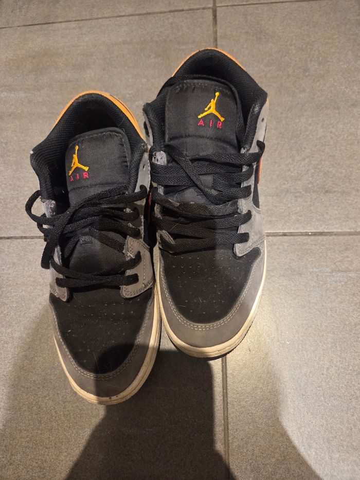 Basket air jordan grise et orange Taille 38 Bon etat La semelle d'une des deux baskettes n'est pas celle d'origine Prix negociable Remise en main propre possible