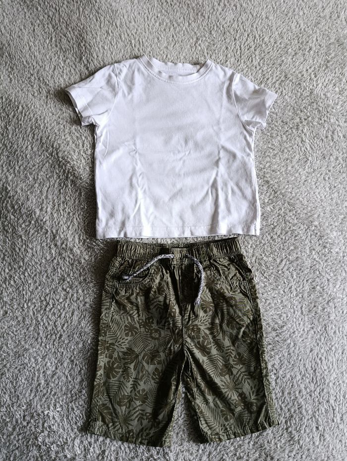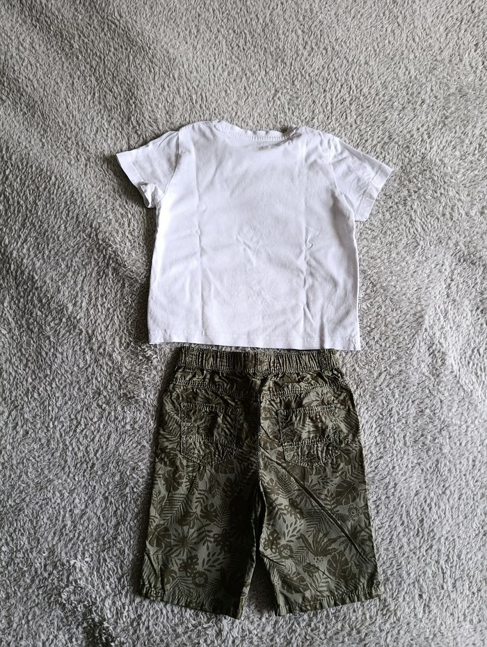Ensemble été 36 mois in extenso – t-shirt blanc + short kaki motif tropical