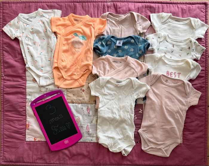 Lot de 10 bodies manches courtes Taille 3mois Marque gemo, petit bateau, hoodadoo Très bon état #vetementsfille #tresbonetat #bodiesmanchescourtes #gemo #petitbateau #hoodadoo