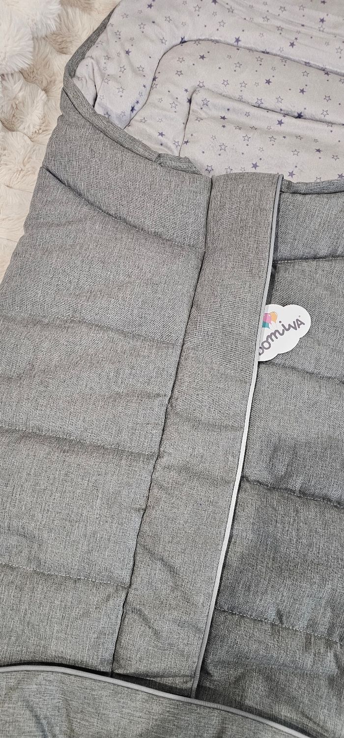 La chancelière Outdoor de chez Domiva est idéale pour la sortie de la maternité par temps froid. En effet, elle emmitoufle bien bébé et le garde assis confortablement. Elle accompagnera bébé pendant les balades hivernales en poussette. Universelle, elle s'adapte sur la plupart des poussettes. Fentes dorsales pour passer le harnais 5 points Bande réfléchissante pour se promener même en début de soirée Installation facile: ouverture pratique par zip Intérieur en microfibre pour garderbébé bien au chaud Matériaux de qualité pour une chancelière qui dure Dos anti-dérapant pour que bébé ne glisse pas de la poussette Sécurité assurée: liens pour fixer la chancelière directement à la poussette Cordon de resserrage pour faire une capuche Tissu extérieur coupe-vent et imperméable. Neuf jamais utilisée.