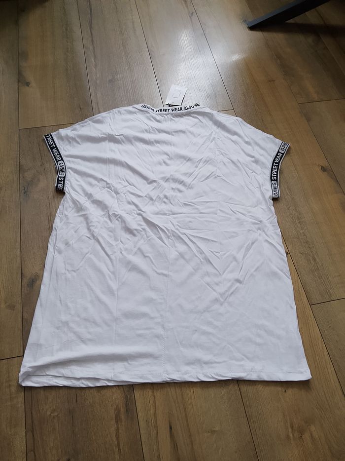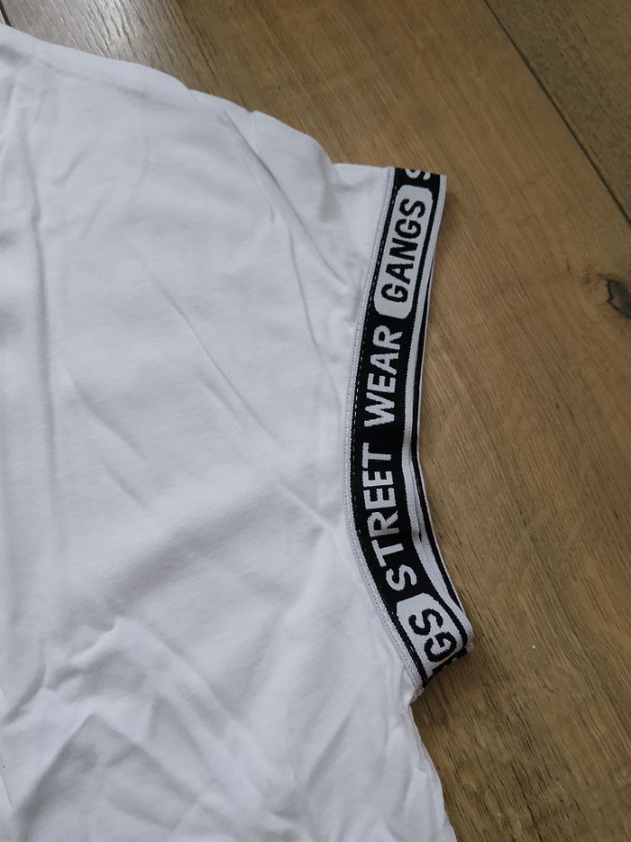 T-shirt blanc manches courtes pour homme, uni, motifs sur les manches. Taille : XL Marque : Gangs Mesure dessous de bras à dessous de bras : 61cm Article neuf avec étiquette. Vendu en magasin au prix de 22,99€. G21087 blanc XL N°1