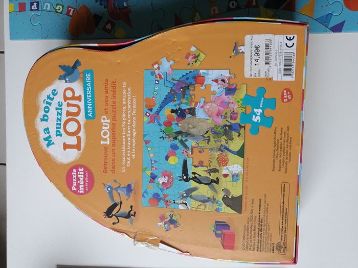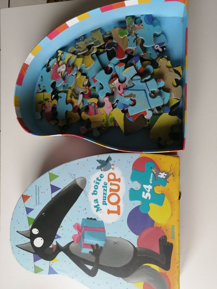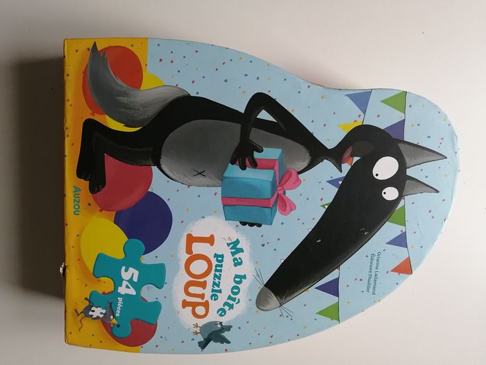 ma boîte puzzle loup anniversaire 54 pièces auzou à partir de 3 ans peut présenter des traces du jeu, notamment petit accroc sur la boîte d'autres articles de loup à voir sur mon dressing