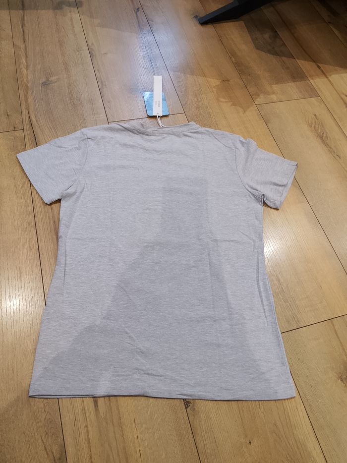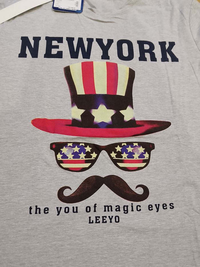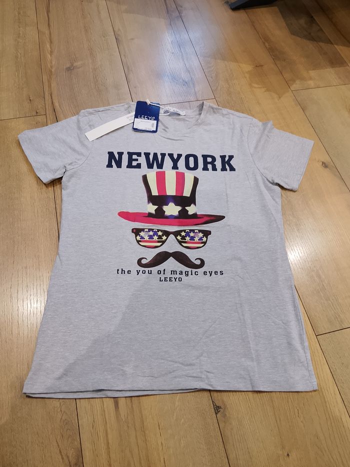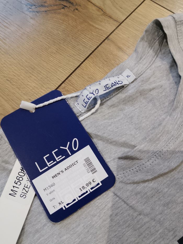 T-shirt gris pour homme, manches courtes, flocage sur le devant, uni sur l'arrière. Taille : Étiqueté en XL mais correspond plus à un L. Marque : Leeyo Mesure dessous de bras à dessous de bras : 48 cm Article neuf avec étiquette. Vendu en magasin au prix de 19,99€. M1560 gris XL N°1