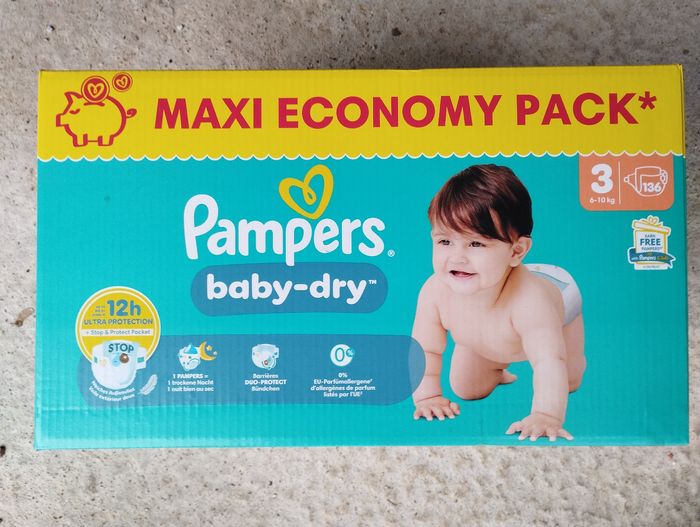 Bonjour Je vend ce paquet de couches pampers baby dry taille 3. D'autres paquets de taille et type différents sont disponibles. Possibilité de vendre plusieurs paquets à la fois.
