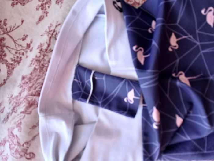 Motif flamand rose 85 % polyester 15 % elastanne Petite poche intérieure Fabriqué en France