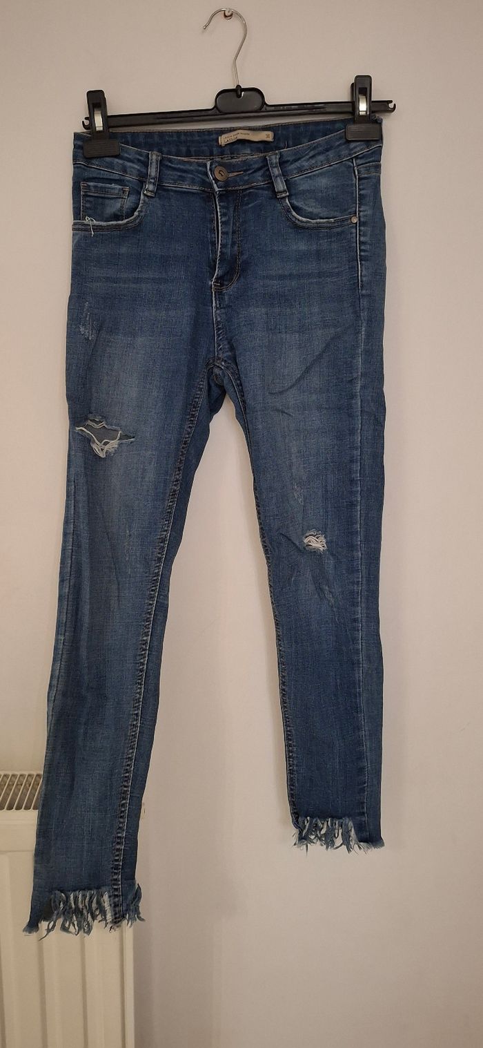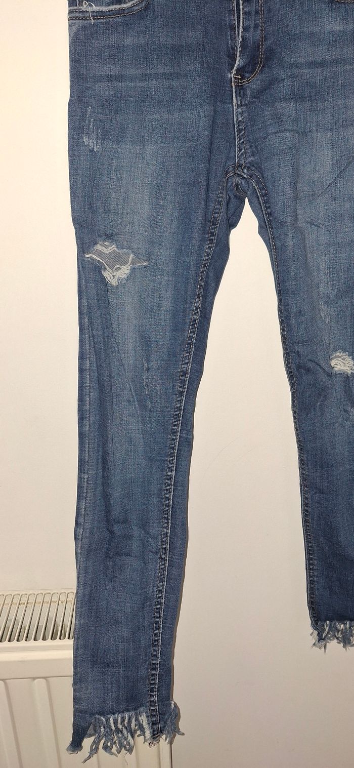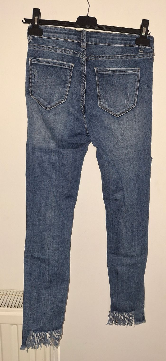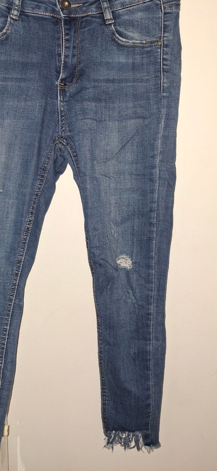 Description : ​Vends superbe jean de la marque Laulia Denim Makers. Un basique avec du caractère, parfait pour un look décontracté ou bohème-chic. • ​Coupe : Slim / Près du corps. • ​Couleur : Bleu moyen délavé (wash naturel). • ​Détails : * Effet usé/déchiré ("distressed") sur les cuisses et les genoux. • ​Finition originale avec de grosses franges au bas des jambes. • ​État : Très bon état général. • ​Taille : 36 (S). • ​Confortable grâce à une touche d'élasthanne. Idéal avec des baskets ou des bottines pour laisser apparaître les franges.