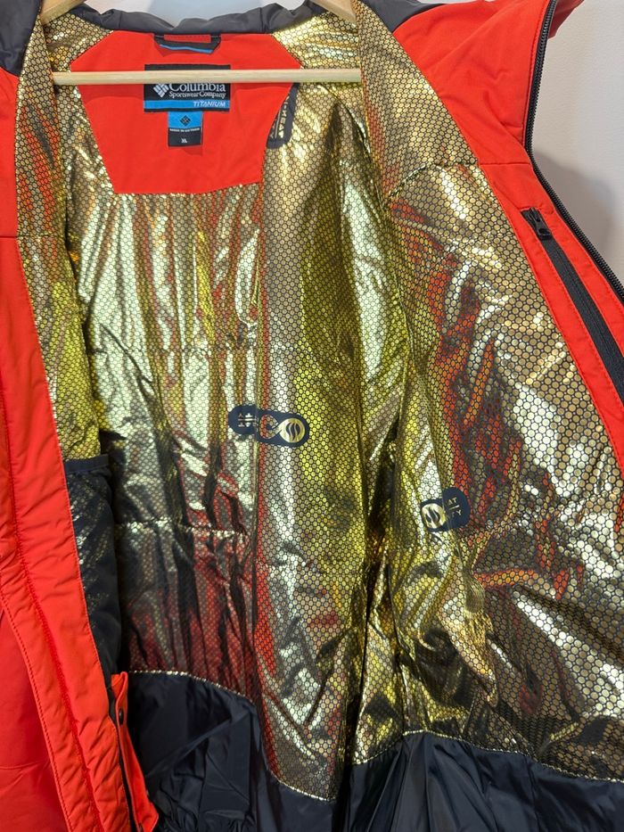 Veste de ski Columbia Titanium Modèle Powbound Omni-Heat Infinity Très chaude technologie semblable aux couvertures de survie Taille XL Couleur orange / marron Imperméable/ Coupe-vent/ Respirante Capuche intégrée Gamme Titanium Neuve avec étiquette Idéale ski / montagne