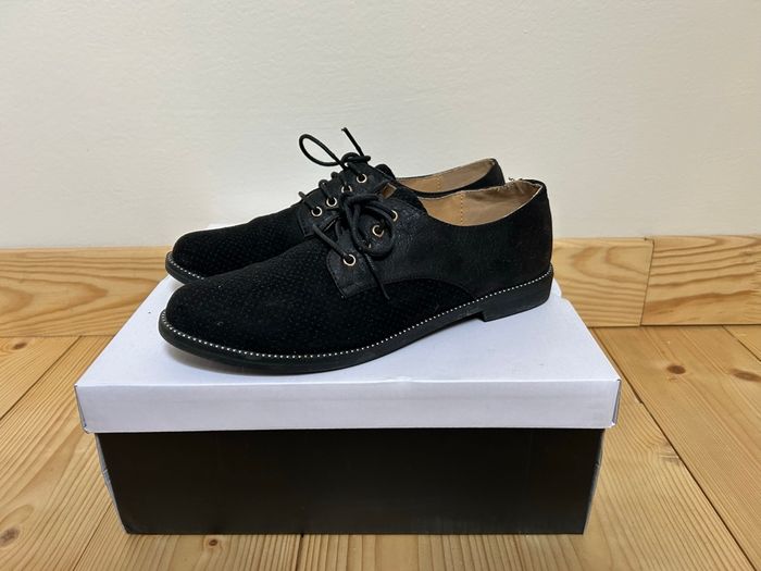 Derbies noires bi-matières suédine et simili cuir Pointure 40 Très bon état