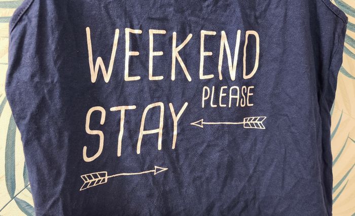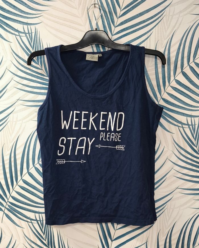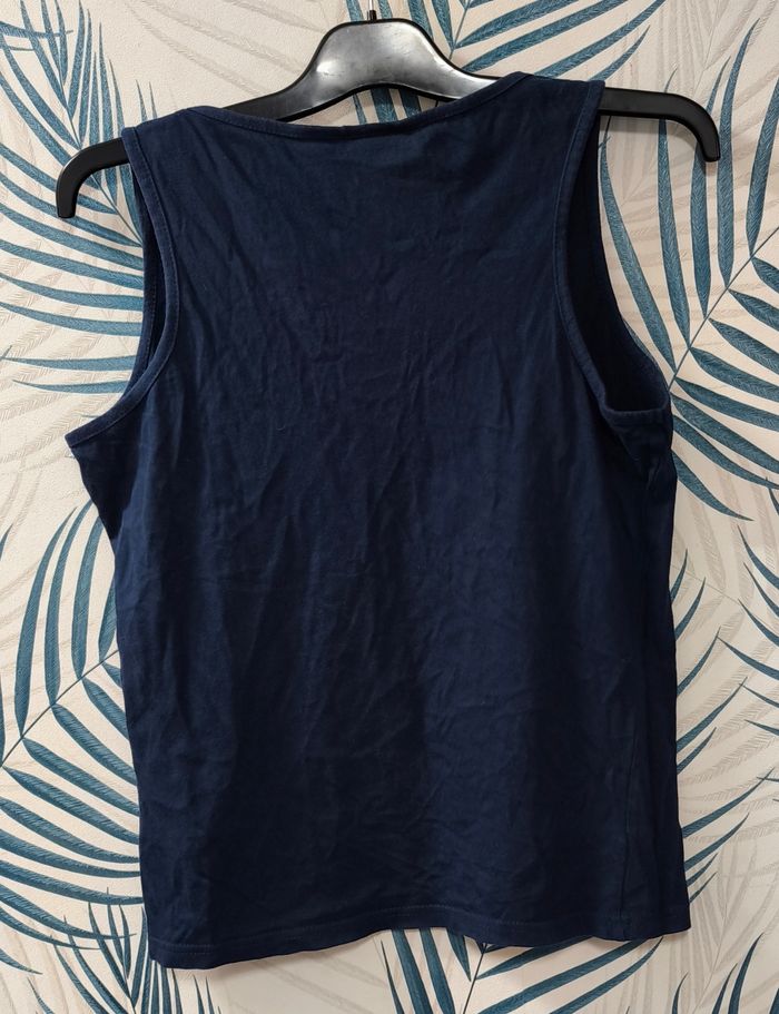 Débardeur de la marque 9TH AVENUE - Marine - Matière : 100% coton - Taille : L / 40 - Largeur épaule 40 cm - Largeur aisselles 47 à 53 cm - Longueur épaule 59 cm - Longueur aisselles 40 cm ℹ️ Excellent état, juste le flocage qui craquelle par endroit (voir photo) #kat02600femme40 #9thavenuefemme #debardeurfemme40 #femme40 #tshirtfemme40