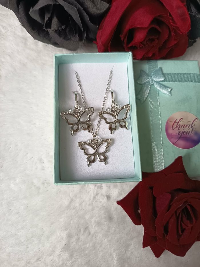 Ensemble bijoux pendentif argenté Acier inoxydable Bijoux neuf (création) Offert avec sa boite Envoi rapide ⚘️