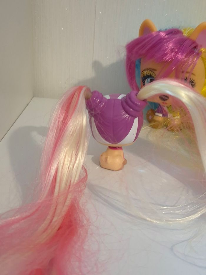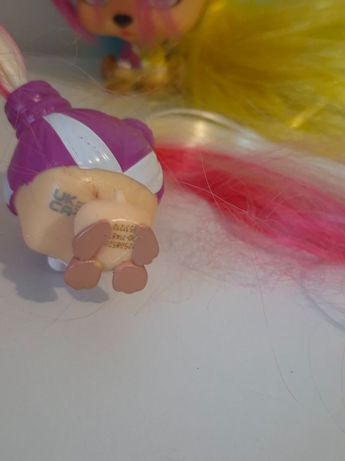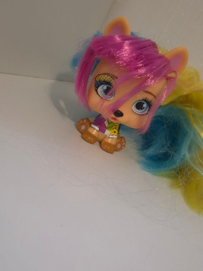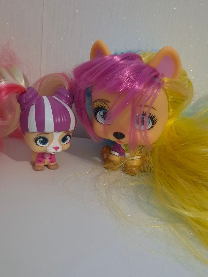 ​🌟 Lot Figurines VIP Pets - Chien & Mini Chiot 🌟 ​Description : ​Vends ce superbe duo de figurines VIP Pets comprenant une grande figurine et sa version mini (Petite sœur / Mini Fan). Parfait pour compléter une collection ou offrir à un enfant fan de coiffure ! ​Personnages : Grande figurine aux cheveux multicolores (jaune, bleu, rose) avec bandeau cœurs + Mini figurine assortie avec couettes bicolores. ​État : Bon état général. Les cheveux sont longs et peuvent être coiffés à volonté. Quelques légères marques d'usage normal (voir photos détaillées du dessous et du dos). ​Détails : Figurines authentiques avec numéros de série visibles sous les pattes. ​✨ Les plus : ​Maison non-fumeur. ​Envoi rapide et soigné. ​Lots possibles dans mon dressing pour économiser sur les frais de port ! ​#VIPPet #VIPPets #FigurineChien #JouetFille #CoiffureEnfant #MiniVipPets #IMCtoys #JouetOccasion #ribeirozazajouets #CollectionFigurine #VipPetsLove #IdeeCadeau