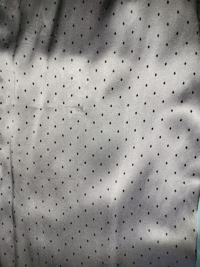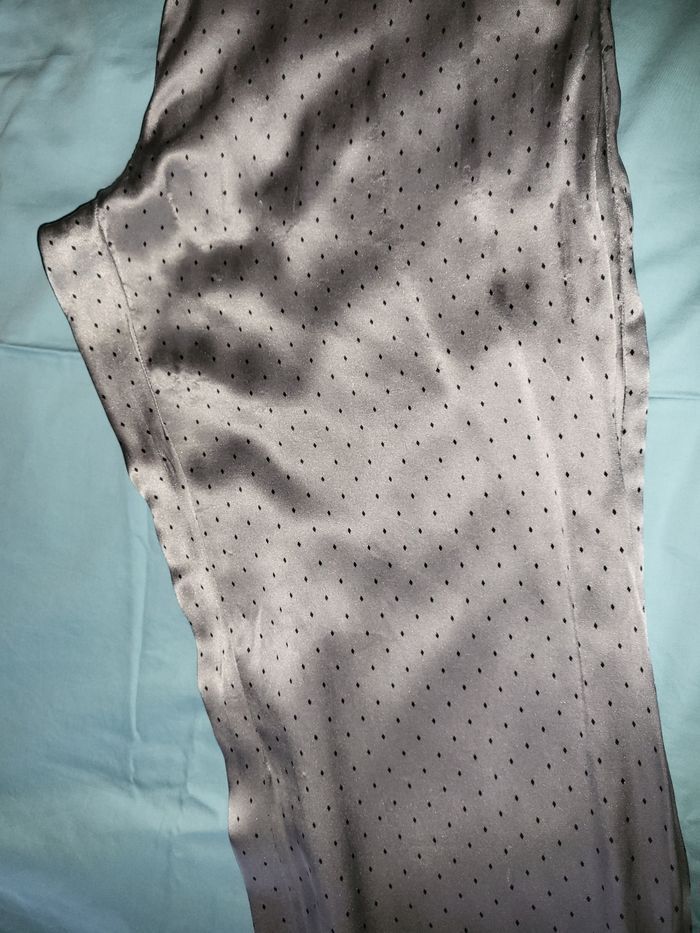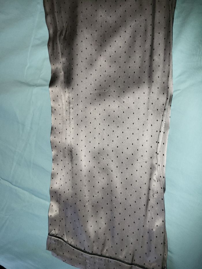 Pyjama gris satine .motif petit losange noir , t 44 , longueur 105 cm , larg taille 45 cm .larg bassin 58 cm, elastique taille ,
