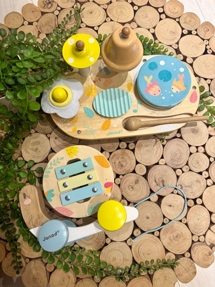 JANOD 🌸 Couleur pastel Lot 2 articles qui comprend : -> Table d’Éveil musical cloche métal , tambourin, gratoire … en bois de la marque JANOD -> escargot à roulette tambourin réversible xylophone bois de la marque JANOD -> un bâton en bois Maison non fumeur - envoi rapide et soigné 🌸📦