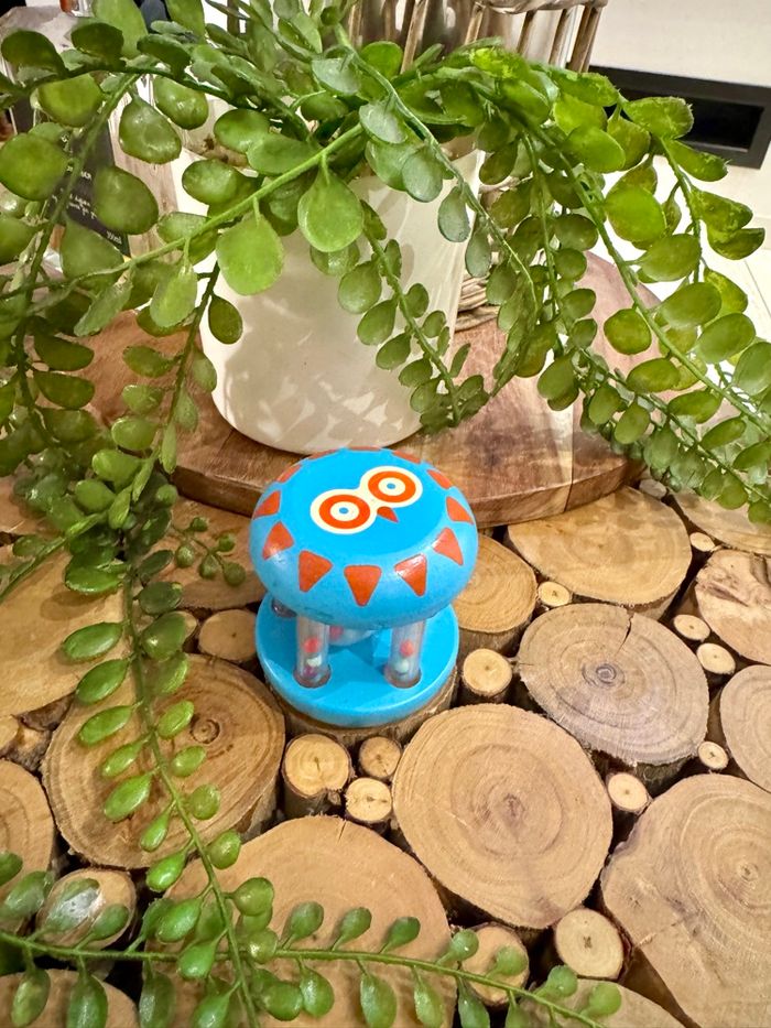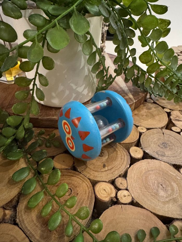 💕DJECO💕 -> Très joli Hochet bois sous forme de tambours de la marque Djeco Couleur bleu - motif hibou indien Maison non fumeur - envoie rapide et soigné 💕