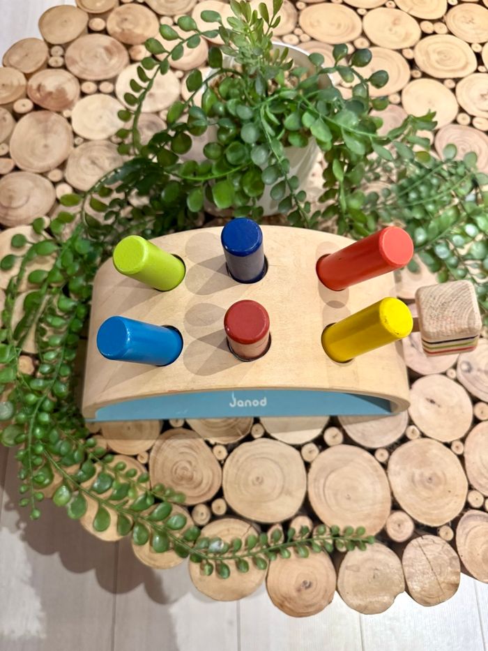 💕JANOD 💕 —> Jeu d'adresse en bois -> développe la dextérité tout -> comprend 6 tenons à enfoncer avec un marteau compris . Dimension: 24,5x10x20 cm Maison non fumeur / envoi rapide et soigné