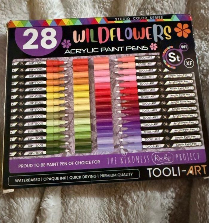 Je vends ce lot de 28 feutres Tooli Art, avec seulement 4 feutres manquants. - Type de produit : Lot de feutres acryliques - Marque : Tooli Art - Quantité : 24 ( manque le 4/5/7/9) - Accessoires inclus : Boîte de rangement un peu abîmé Feutre en Très bon état N'hésitez pas à me contacter pour plus d'informations ! Non négociable