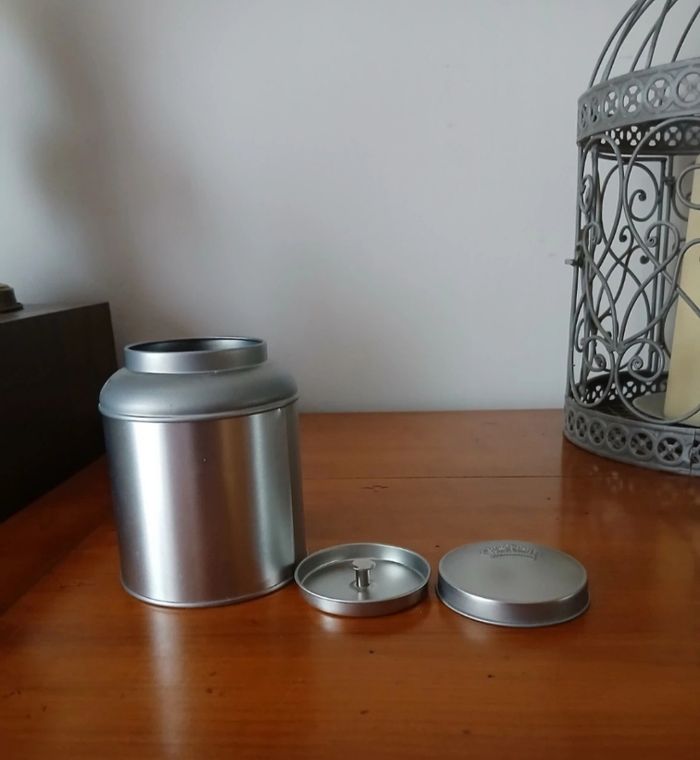 Neuf 2 boîtes à thé: Bois & tissu brodé +Métal *double couvercle hermétique - photo numéro 8