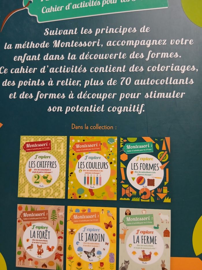 Articles neufs. 1/ Livret Montessori "J'explore les formes"; éditions Piccolia; à partir de 3-4 ans selon l'éditeur. 70 autocollants inclus. Instructions sur chaque page + Paquet de 5 surligneurs marque Bic; à pointes biseautées; 4 coloris; grip pour meilleure prise en main. // voir photos pour détails. À Noter : trace étiquette prix au dos du Livret
