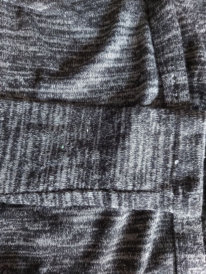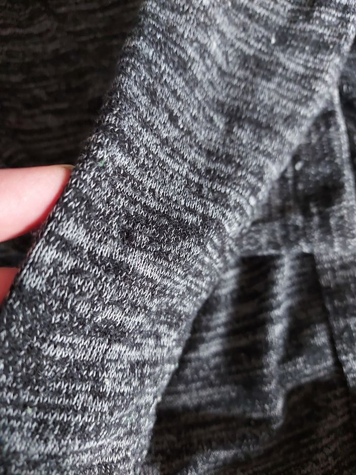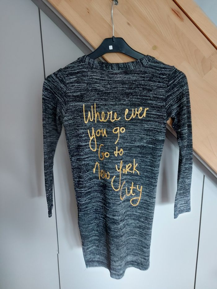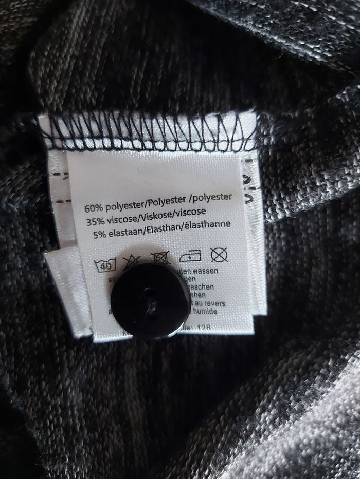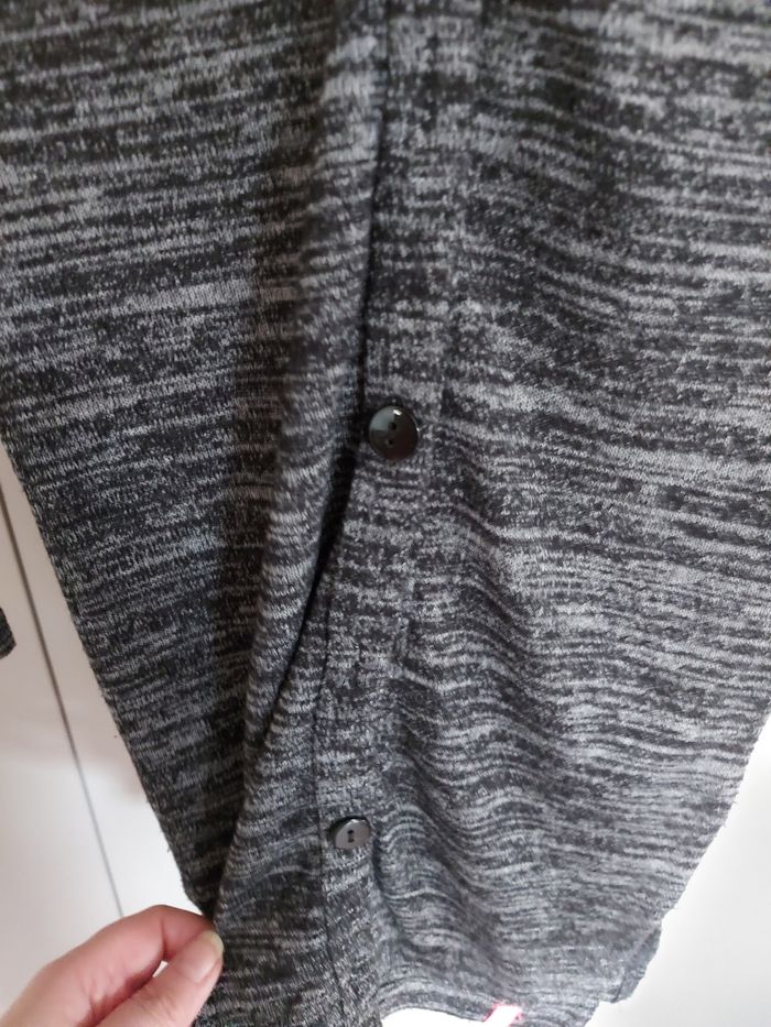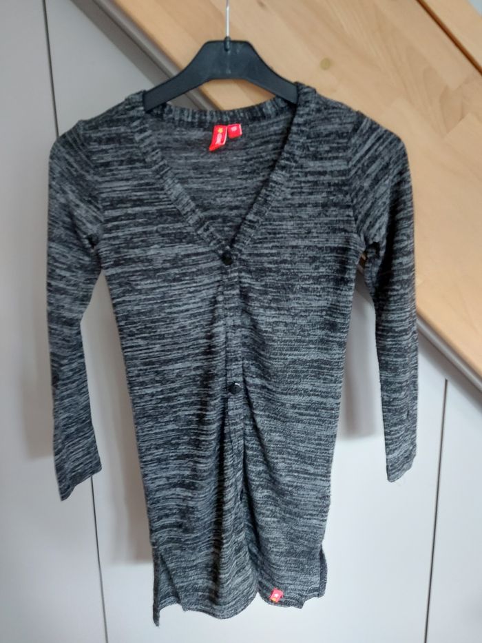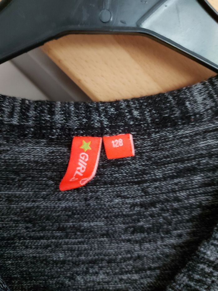 Gilet long, gris chiné, écriture dos Girls Taille 128 Bon état, quelques fils tirés et un peu pluché aux manches
