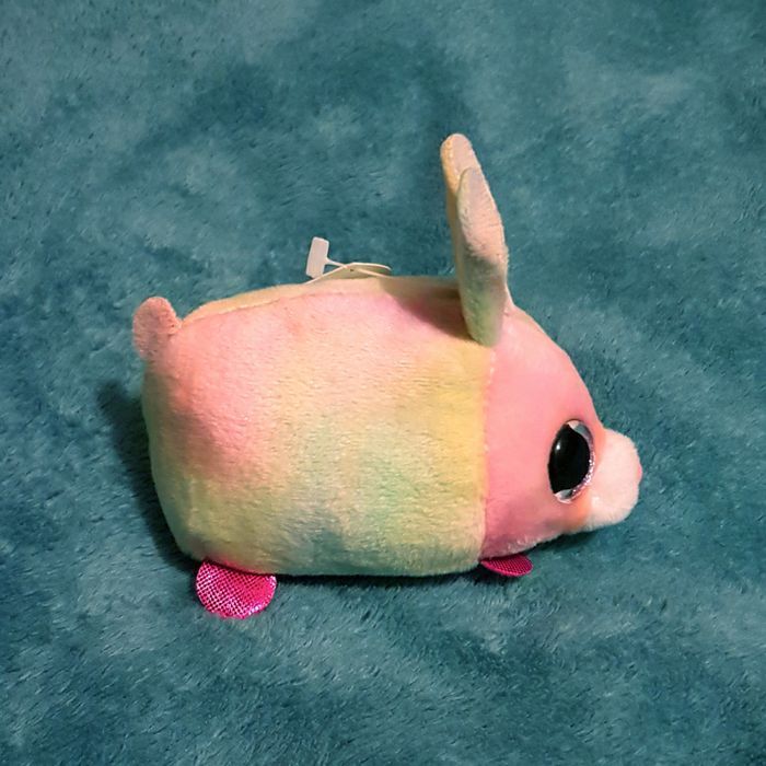 ➡️ANNONCE visible, donc DISPONIBLE⬅️ Peluche TY Teeny Tys Small, neuve. Whiz, le lapin au grand yeux rond. Haut 6 cm sans oreilles. 8,5 cm avec. Long 10 cm. Large 6 cm. Multicolore. À petites boules microbilles au ventre. Pelage tissu velours très doux douce. Couleur pastel dégradé arc-en-ciel, rose pâle jaune vert clair bleu ciel. Museau blanc. Yeux noir pink paillette. Pattes fuchsia fushia foncé brillant. Aux grandes oreilles droites ovales. Position allongé couché sur le ventre. Joli animal domestique lapinou bunny. Comme les mignon YooHoo & friends, Beanie Boos, Babies Boo's, Tsum tsum. Petit mini doudou mixte belle collection. Déco décoration lit beau jeux accessoire. Jouet jeu collector rare collectionneur. Pour bébé enfant ado jeune adulte. Fille garçon homme femme famille. Fête anniversaire noël st saint valentin. Idée cadeau, à offrir, il peut être offert. De 1ière main: acheté à un vendeur pro. Il n'a jamais été donné à un enfant. 💫 En état neuf neuve , avec étiquette. 🏠 Maison non fumeur, sans animaux, sans enfant. 📦 Envoi soigné (colis bien rembourré), 📍 ou remise en main propre à Nimes. 💲 Mes prix sont fixes. Même en lot. ➡️ Voir mes autres accessoires dans mes annonces 😉 #PseudoNimes30