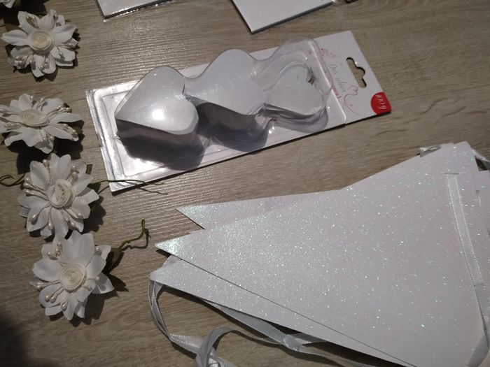 Article de fête marque place dans leur emballage d origine déco de table en forme de coeur ouvert mais en manque peu petite fleur pour faire une décoration et guirlande blanc brillant Deco mariage baptême anniversaire...