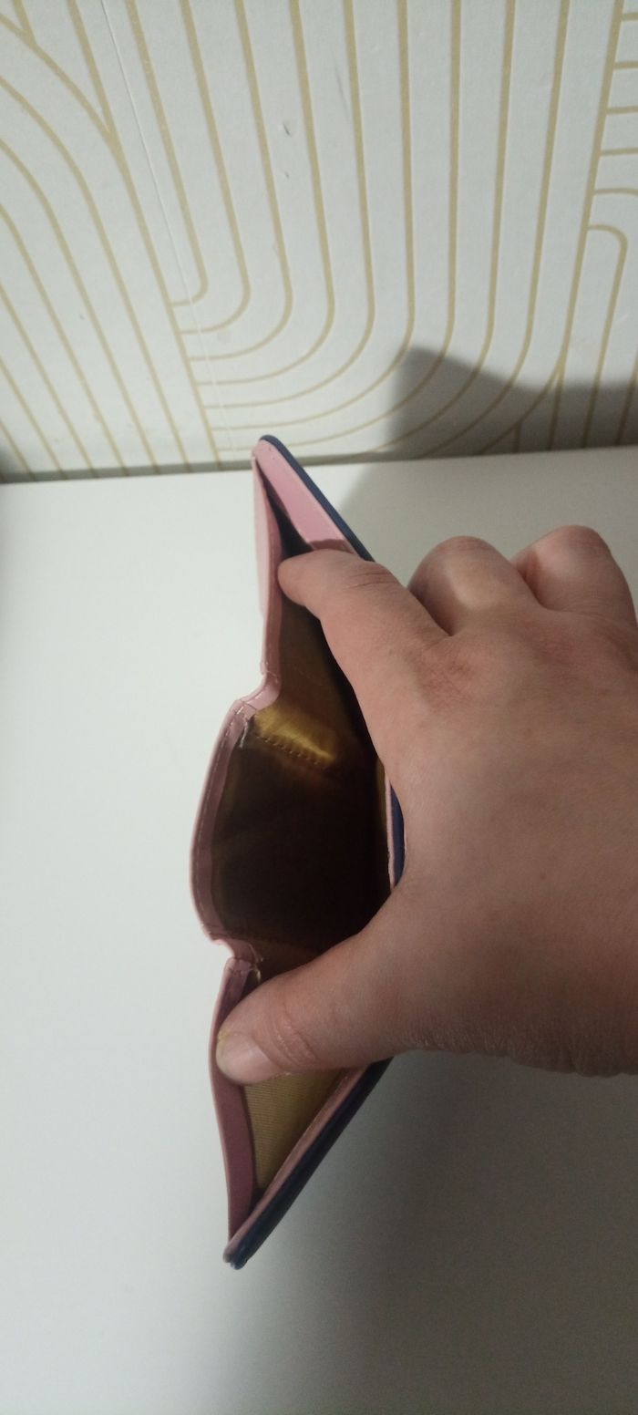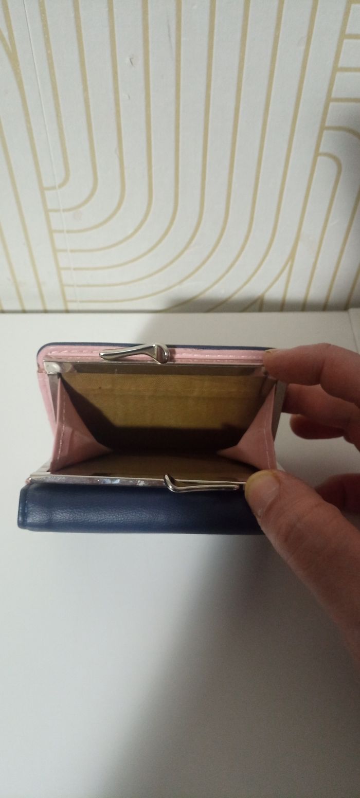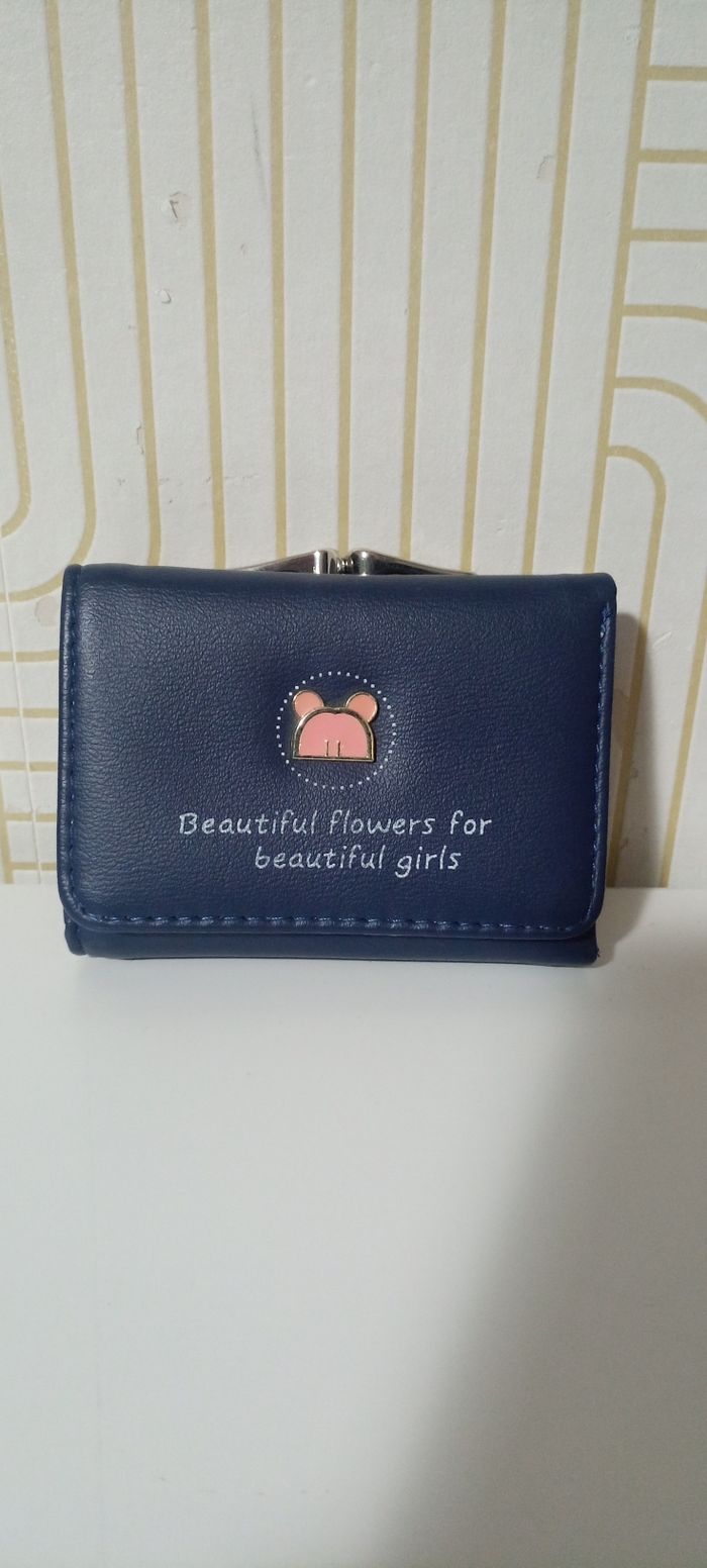 Je vends un portefeuille/ porte monnaie couleur : bleu marine à l’extérieur, rose à l’intérieur. Inscription “Beautiful flowers for beautiful girls” Fermeture : bouton pression + porte-monnaie à clip Rangements : Compartiments pour cartes Emplacement carte d’identité / photo Compartiment billets Porte-monnaie pour pièces État : très bon état