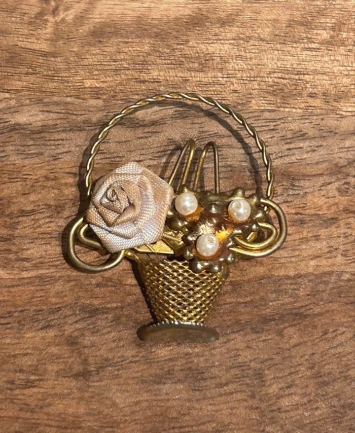 Pour les collectionneurs et amoureux du charme de l’ancien Broche vintage panier fleur doré Traces d usures
