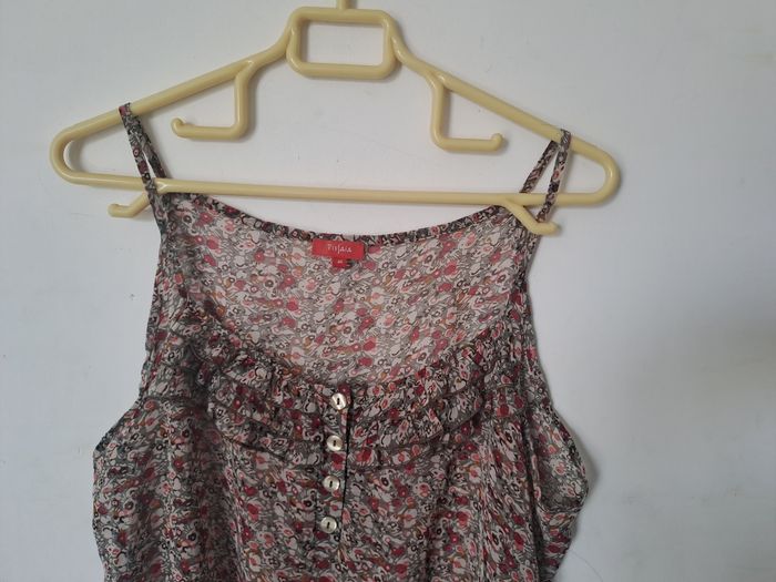 Débardeur léger A fines bretelles Élastique dans le bas Avec 4 boutons au décolleté Petit volant au niveau poitrine Multicolore Taille 46 Marque Tissaia