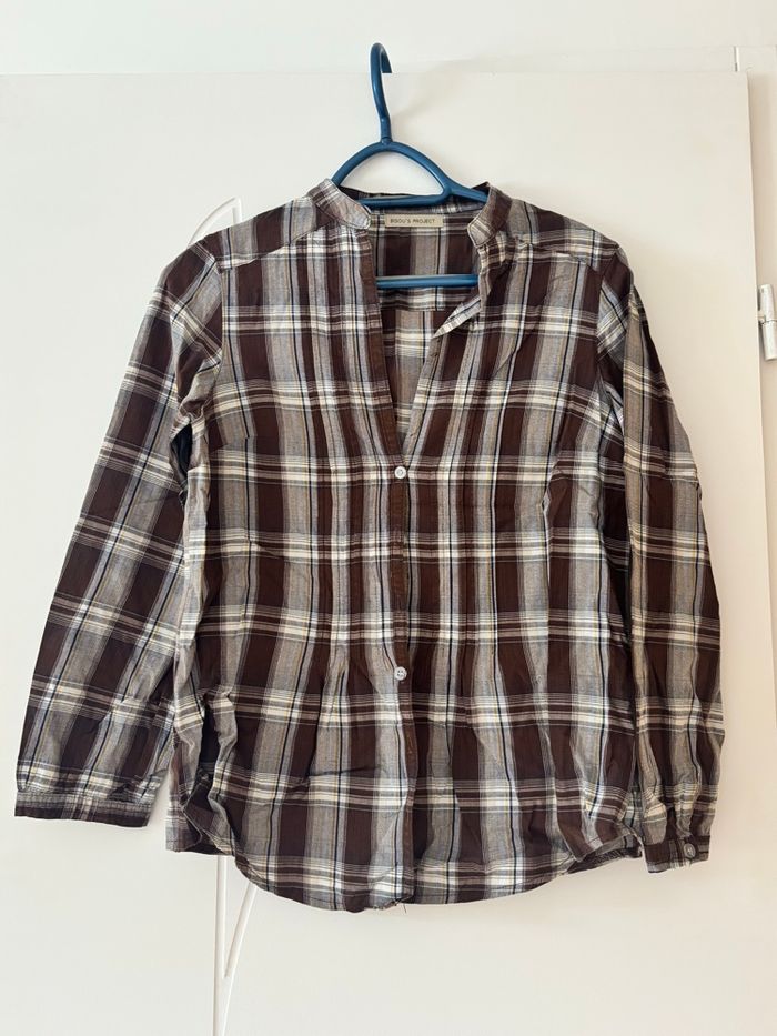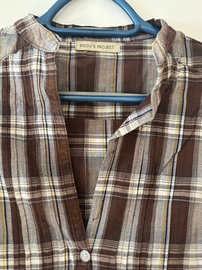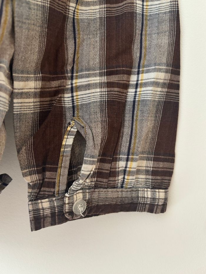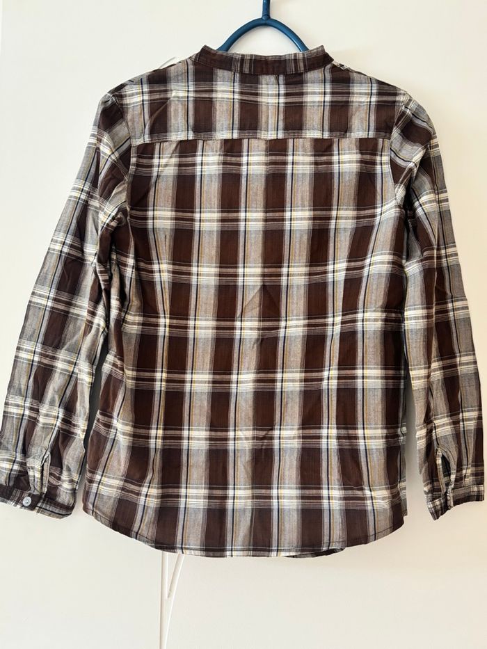 Chemise rayée Coloris marron, blanc, bleu, jaune et argenté brillant Col V Taille S/M