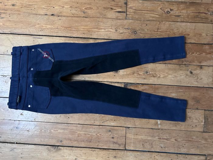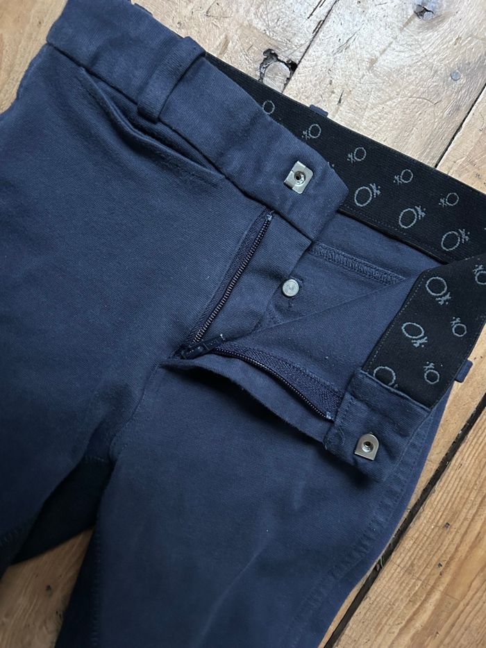 Pantalon équitation marine et daim noir 8 ans Fouganza Decathlon La ceinture mesure à plat 27,4 cm Longueur côté 73,8 cm Longueur entre jambe 54,7 cm Bon état car une marque de stylo