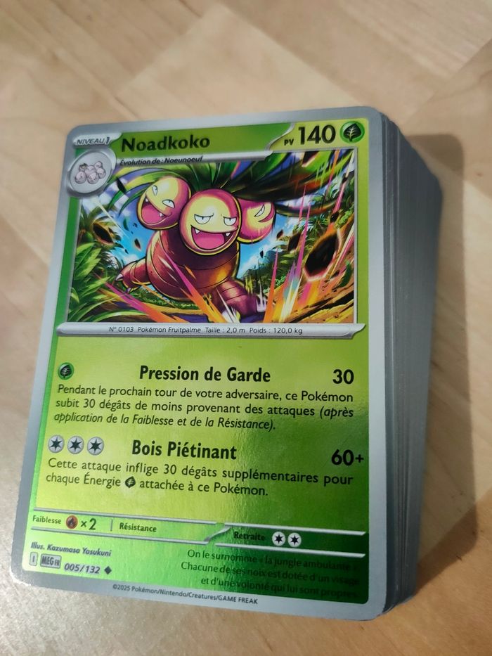 Bonjour, je vends un lot de 77 cartes Pokémon reverses de l'extension Méga-Évolutions. Prix du lot: 19,25€ Prix ferme Le lot contient : 05 - 06 - 07 - 08 - 09 - 10 - 11 - 14 - 15 - 16 - 17 - 18 - 19 - 20 - 21 - 23 - 26 - 27 - 28 - 29 - 30 - 31 - 32 - 33 - 34 - 35 - 38 - 39 - 42 - 43 - 44 - 46 - 47 - 49 - 51 - 52 - 55 - 57 - 58 - 59 - 61 - 62 - 63 - 66 - 73 - 76 - 79 - 81 - 82 - 84 87 - 88 - 89 - 90 - 91 - 92 - 95 - 96 - 97 - 98 - 105 - 106 - 108 - 109 - 110 - 112 - 114 - 115 - 118 - 121 - 122 - 124 - 125 - 126 - 127 - 128 - 132   Livraison possible via le relais de votre choix Possible de dissocier le lot, envoi à partir de 20 cartes minimum N'hésitez pas à regarder mes autres annonces :)