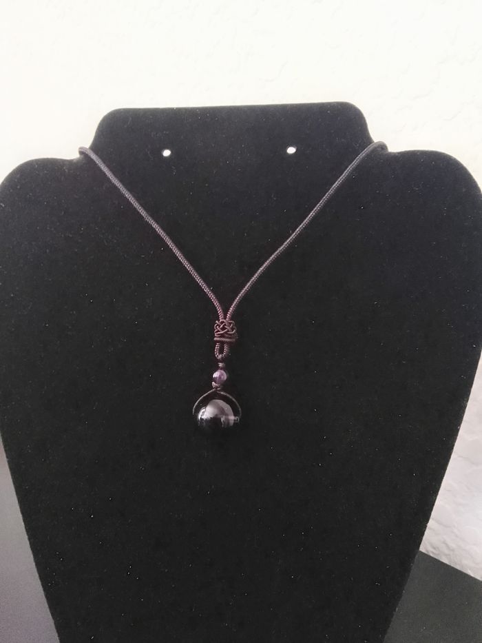 Collier corde réglable + pendentif spirituel. Pendentif : pierre améthyste. (protection, bohème, spirituel, ethnique, idéal cadeau) Envoi rapide et soigné.