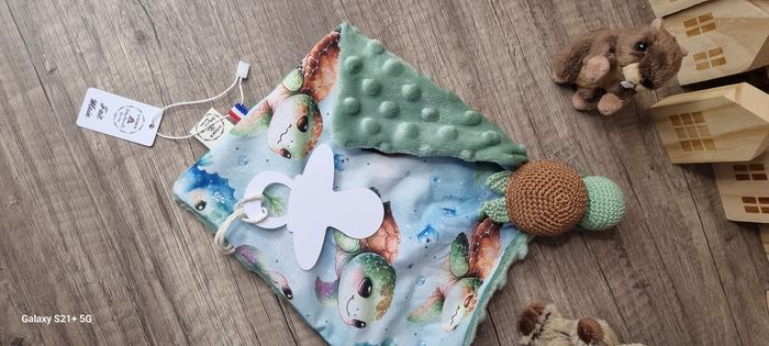 ​🐢 À adopter : Doudou Tortue sensoriel (Coton & Minky) ​Offrez un compagnon de tendresse à votre tout-petit avec cette adorable tortue faite main, conçue pour apaiser et éveiller les sens. ​✨ Les points forts : ​Textures contrastées : Un côté en coton doux avec des motifs délicats et un côté en Minky à pois (reliefs 3D) pour stimuler le toucher de bébé. ​ ​Apaisant : Idéal pour les moments de sieste, les câlins ou comme objet de transition pour la crèche. Personnalisation du prénom de bébé OFFERTE Autres coloris sur commande