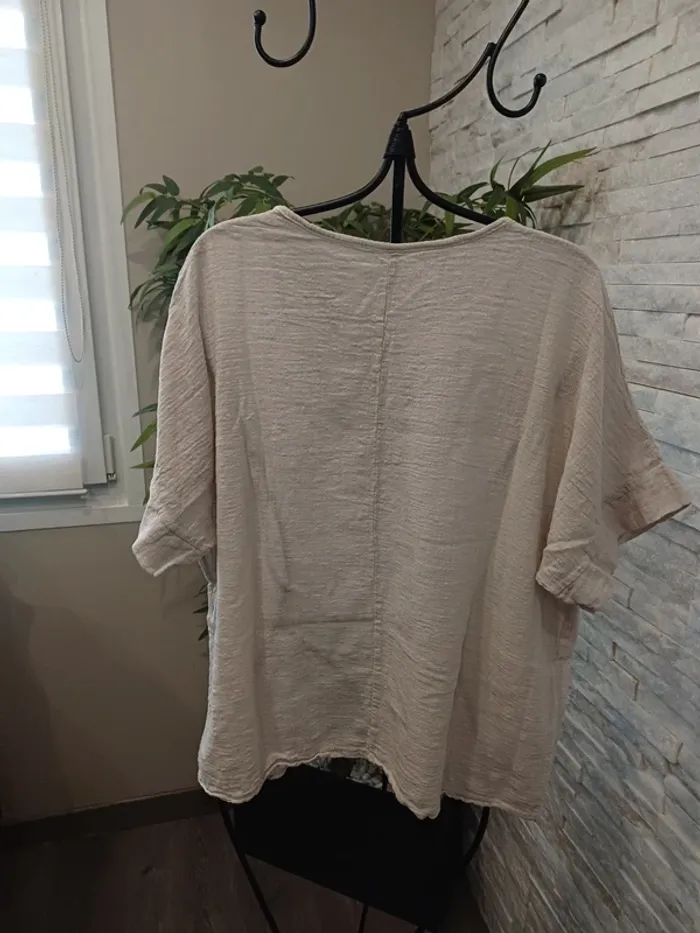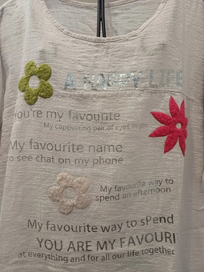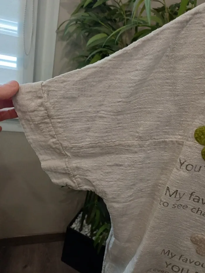 Écritures argentées Manches courtes Motif fleurs en tissus moumoute Style chauve souris Encolure ronde Peu portée