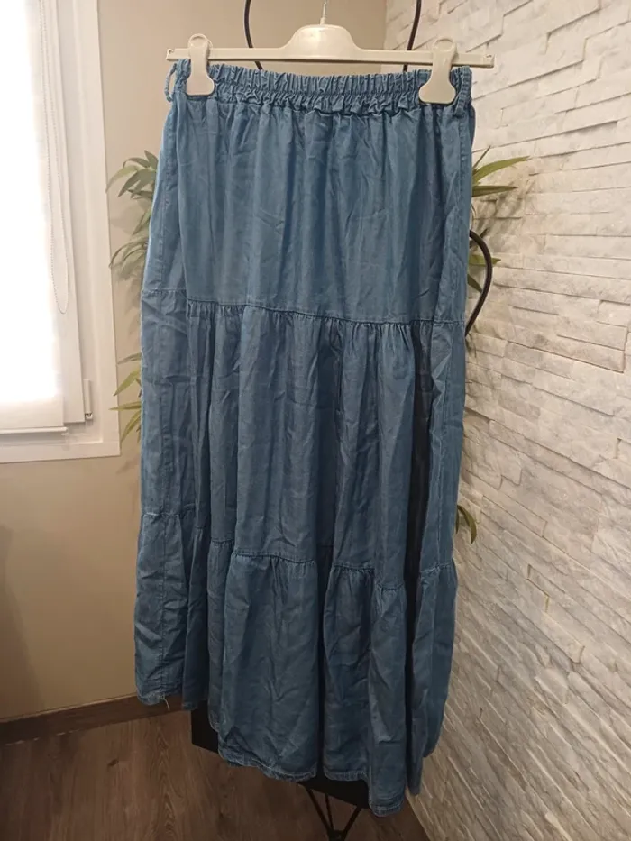 En coton Style denim Grands volants Taille élastique avec passants Taille 42/44 Portée une fois