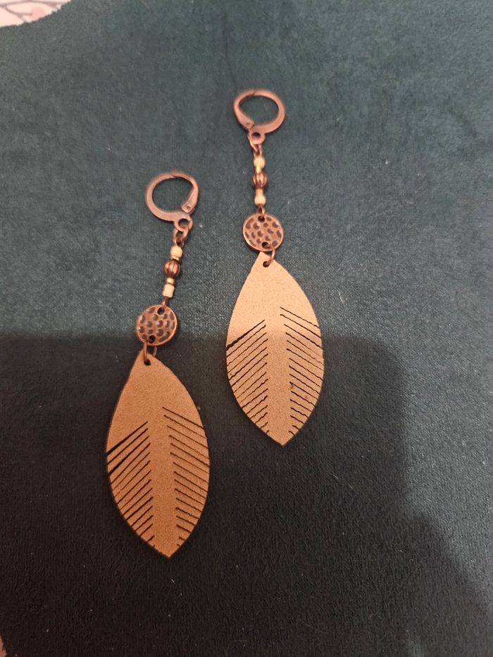 Motif feuille en liège beige Attache en plastique Hauteur 4cm