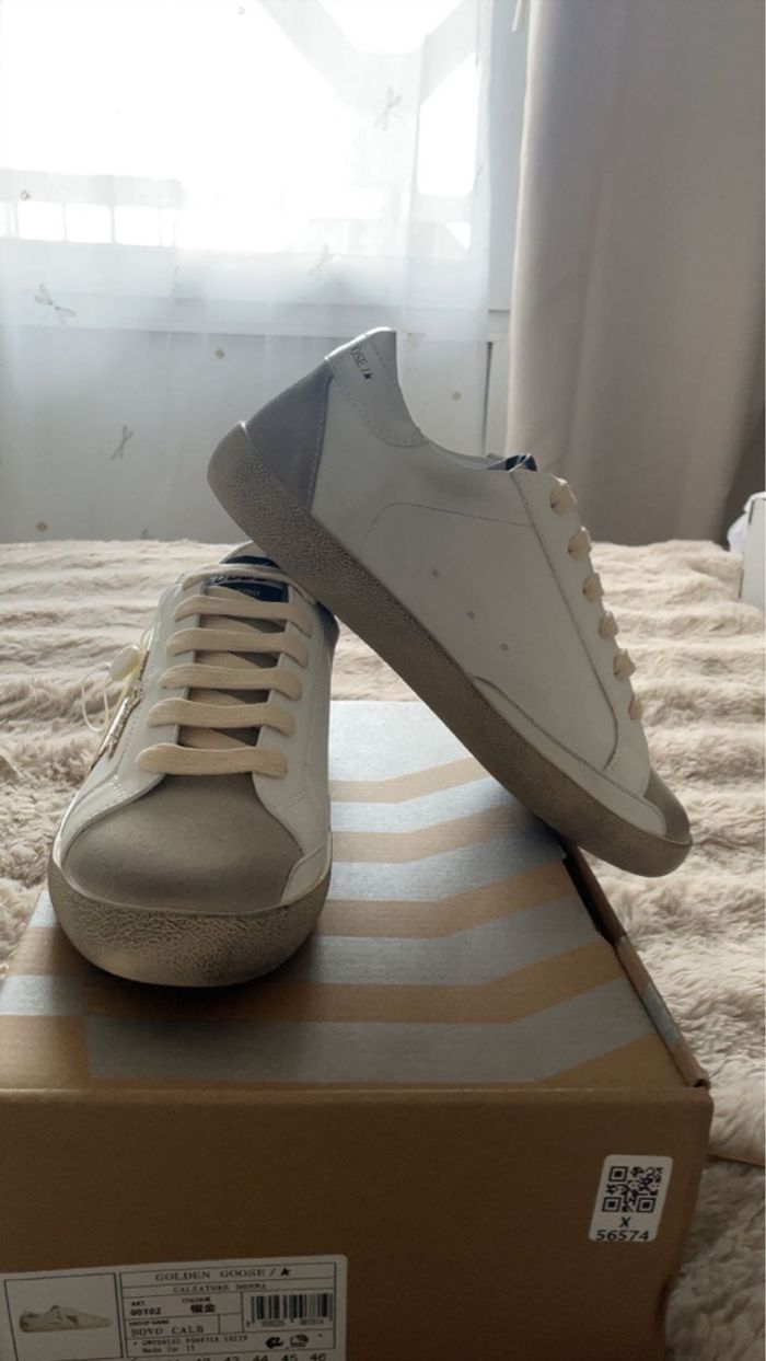 Cadeau reçu mais malheureusement pas à ma taille. Baskets Golden Goose en état neuf, jamais portées. Modèle authentique, toujours dans leur boîte d’origine, parfaites pour ceux qui cherchent une paire stylée et de qualité. Une occasion à ne pas manquer ! Envoie sous 24h✅ Toujours disponible ✅ Prix négociable ✅